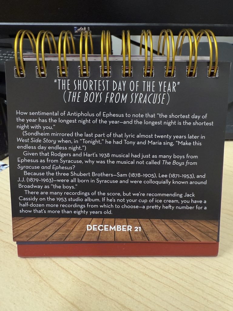 Showtune for Today: The Shortest Day of the Year from The Boys from Syracuse
