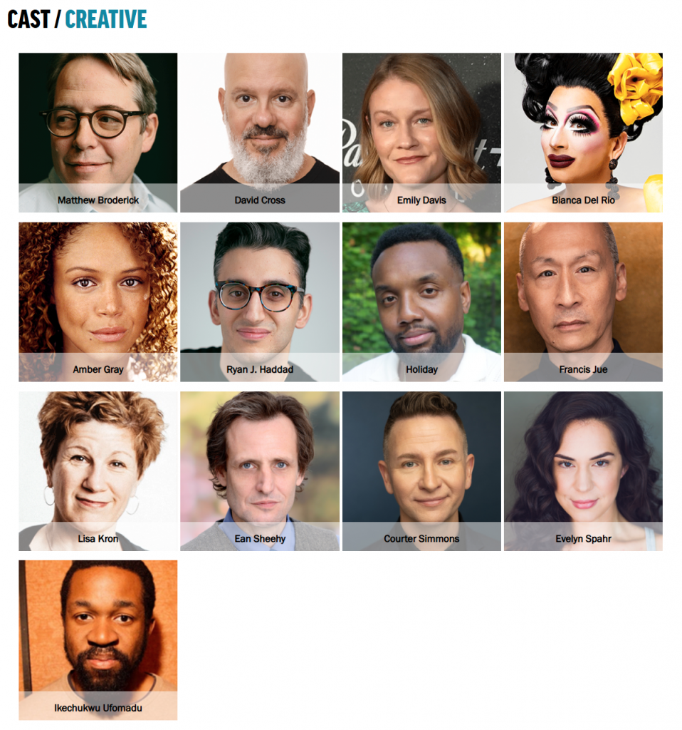 Photo of Matthew Broderick by Tawni Bannister; Bianca Del Rio by Matt Crockett; Ryan J. Haddad by Stephen K. Mack; Lucas Hnath by Rebecca Martinez; Sarah Benson by Pavel Antonov.